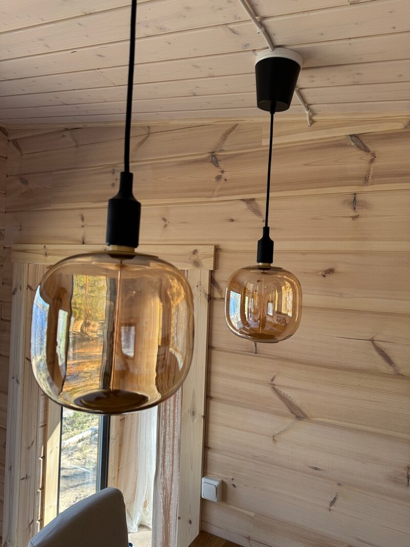 The Unna luminaires feature a beautiful, large Unna bulb with an E27 base. The range includes two luminaires. Inside the amber-tinted shade, a very warm LED (2000 K) creates a soft glow. The luminaire comes with a black cable. The clear Unna bulb, in turn, emits a warm white light (2700 K), and the luminaire is fitted with a white cable.
