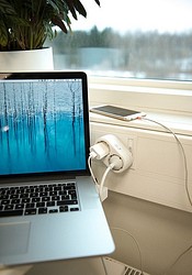 White splitters for indoor use are suitable for Euro and Schuko plugs. With splitters, you can easily create additional places for electrical appliances in your home. The range includes a model with an on/off switch and several options with USB ports. A splitter is also available for the USB-C cord.