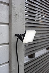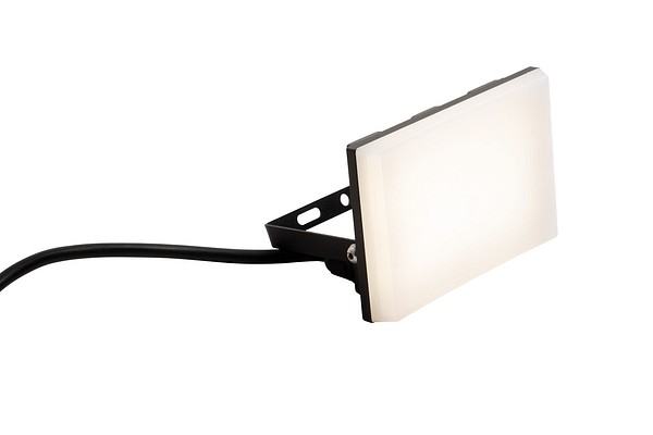 A 20-W LED floodlight for various lighting applications in the yard or garden. The borderless design ensures even light production along the entire surface of the fixture. Adjustable lighting angle. High-pressure die cast aluminum frame in black. Globe made from polycarbonate. Non-replaceable LED 20 W 1 600 lm 4000 K. IP44, IK08. Plug socket connection with a rubber cable of 0.8 m.