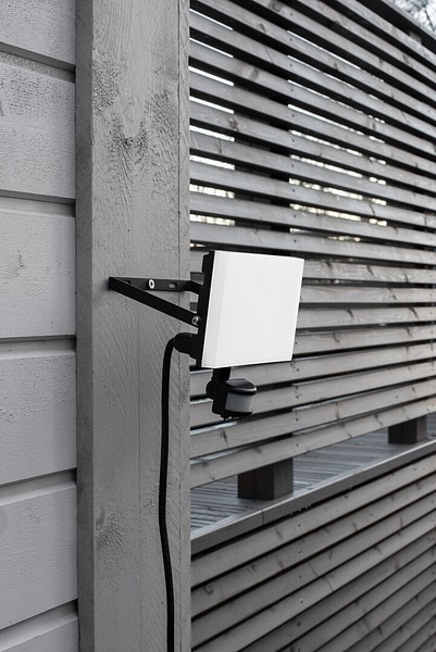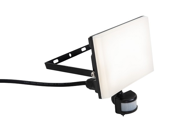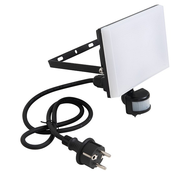 A 30-W LED floodlight with a motion detector for various lighting applications in the yard or garden. The borderless design ensures even light production along the entire surface of the fixture. Adjustable lighting angle. High-pressure die cast aluminum frame in black. Globe made from polycarbonate. Non-replaceable LED 30 W 2 400 lm 4000 K. IP44, IK08. Plug socket connection with a rubber cable of 0.8 m.