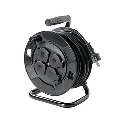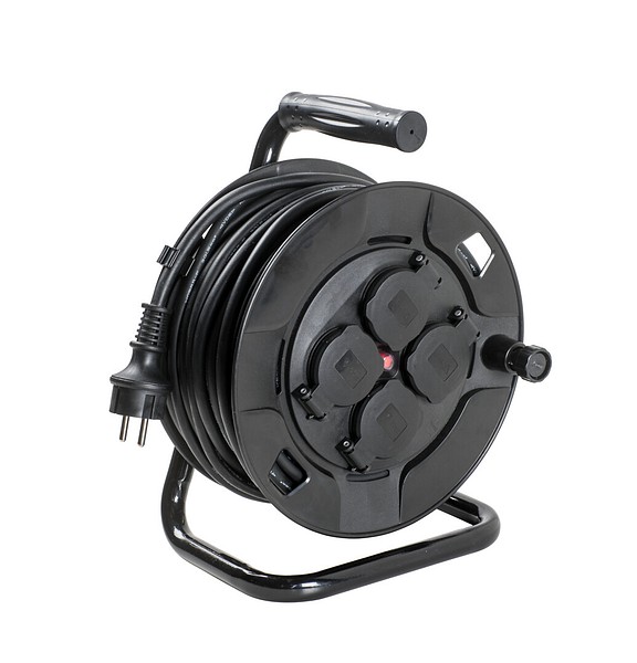 Handy cord reels for yard work or renovation. These cord reels are intended for both indoor and outdoor use and they have overheating protection that triggers if not enough cord has been pulled off the reel before power is turned on.