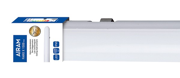 Faro X is a quality universal luminaire for indoor use, such as cellars, storage spaces and garages. The enclosure class of the light is IP65: it’s completely dust proof, water proof and protected from water from all sides. The even and powerful LED light lights up instantly, colour temperature 4000 K. Fixed LED. The light is easy to install with the included metal installation brackets. Surface mounting on the ceiling, 3 x 1,5 mm². Through-wired, easy to chain. Three different lengths. Faro X is not suitable for agricultural or industrial use.