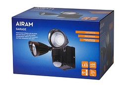 The Garage LED lamp with motion detector will illuminate your yard or outbuildings even where mains electricity is not available. The lamp works on batteries (6 x AA), which are sold separately. The lamp features two spotlights that can be pointed in different directions.