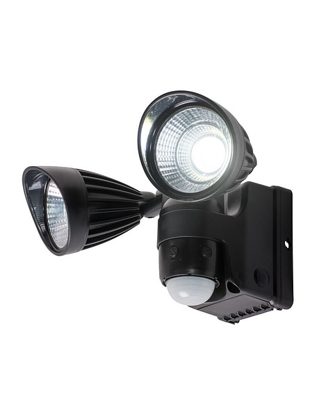 Garage LED motion sensor light for outdoor areas where mains power is not available. The spotlights can be adjusted individually. Light source: 2 x 3 W LED, 400 lm. Operates on 6 x AA batteries (not included). Wall mounting with screws, included in the package.