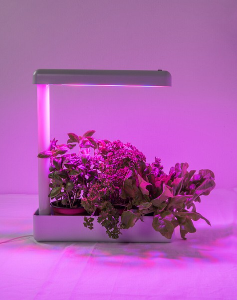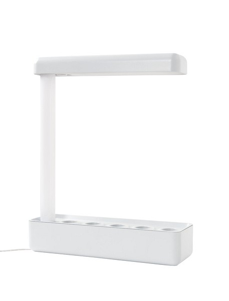 Grow light especially suitable for growing herbs and seedlings in individual pots. The base tray fits three Ø 8–9 cm herb pots. Fixed LED grow light 10 W with selectable magenta grow spectrum or cool white 4000 K (650 lm). White polycarbonate housing. Includes mains adapter with 1.8 m cable.