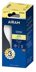 Clear standard dome dimmable filament LED lamp 4.5W, color temperature warm white 2700K, E27 base, 470 lm, lifespan approx. 15,000 h, size ø 60 x 108 mm, cardboard packaging. Frequency ~50/60 Hz. The lamp provides fully omnidirectional light distribution, making it ideal for ceiling fixtures and table lamps. Operating temperature range -30 … +40 °C. Good color rendering index CRI > 80. Continuous, even spectrum with no color distortion. No UV or IR radiation. Mercury-free. Three-year warranty.