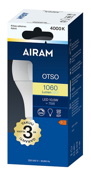 SMD lamps feature a plastic neck. The LEDs are positioned on the surface of the neck section inside the lamp bulb, which means SMD lamps do not emit light towards the base. Depending on the luminaire, the neck may appear as a slightly darker shadow in the surroundings. Otso SMD LED standard lamps 4000 K provide cool white light. The range includes a comprehensive selection of opal-bulb lamps in various shapes with E14 or E27 bases.