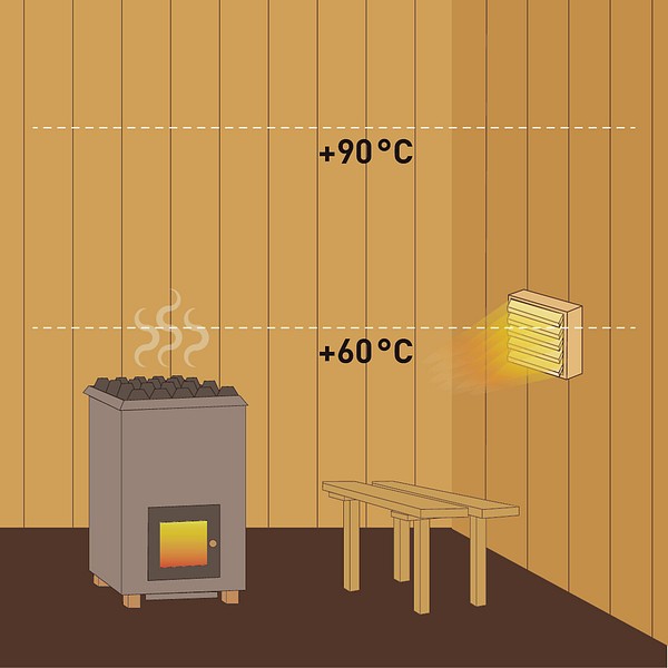 Suitable for luminaires installed low in the sauna, for example under the benches.