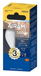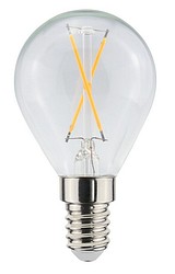 Decor Clear series clear small dome filament LED lamp 1W, color temperature warm yellow 2200K, E14 base, 90 lm, lifespan approx. 15,000 h, size ø 45 x 80 mm, glass dome, cardboard packaging. Frequency ~50/60 Hz. The lamp provides fully omnidirectional light distribution, making it ideal for ceiling fixtures and table lamps. Operating temperature range -20 … +40 °C. Good color rendering CRI > 80. Continuous, even spectrum with no color distortion. No UV or IR radiation. Mercury-free. Three-year warranty.