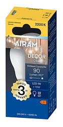 Clear-glass LED filament lamps emitting very warm light (2200 K) are ideal for creating atmospheric lighting in the home. The beautiful glass bulbs emit light also towards the base, making them suitable for luminaires where the lamp is installed base-up. These decorative lamps are visually striking even without a shade. Technical specifications are clearly presented on the packaging.