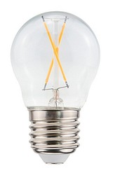 Decor Clear series clear small dome filament LED lamp 1W, color temperature warm yellow 2200K, E27 base, 90 lm, lifespan approx. 15,000 h, size ø 45 x 78 mm, glass dome, cardboard packaging. Frequency ~50/60 Hz. The lamp provides fully omnidirectional light distribution, making it ideal for ceiling fixtures and table lamps. Operating temperature range -20 … +40 °C. Good color rendering CRI > 80. Continuous, even spectrum with no color distortion. No UV or IR radiation. Mercury-free. Three-year warranty.