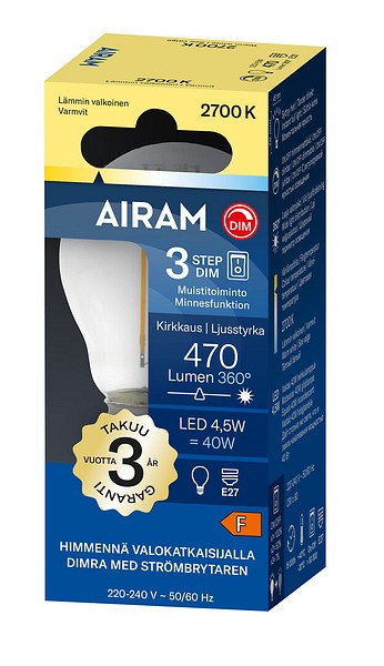 | LED P45 827 470lm E27 FIL 3ST DIM |