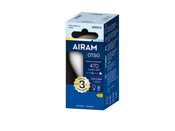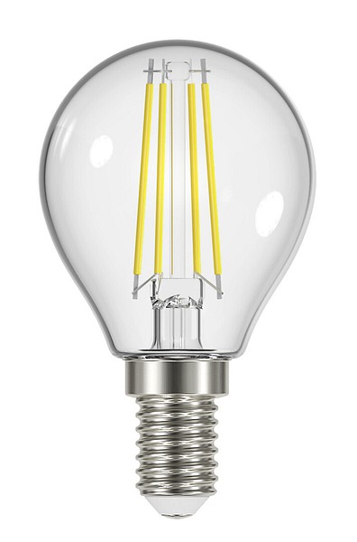 A very comprehensive lamp range offering options for all home lighting needs. The attractive and durable lamps with full glass bulbs fully replace incandescent, halogen and energy-saving lamps. The colour temperature of the lamps is cool white (4000 K). The clear glass bulb reveals the LED filament inside the lamp. These elegant lamps are particularly suitable for decorative luminaires where the light source is clearly visible. Technical specifications are clearly presented on the packaging.