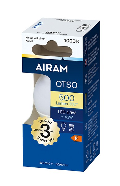 SMD lamps feature a plastic neck. The LEDs are positioned on the surface of the neck section inside the lamp bulb, which means SMD lamps do not emit light towards the base. Depending on the luminaire, the neck may appear as a slightly darker shadow in the surroundings. Otso SMD LED standard lamps 4000 K provide cool white light. The range includes a comprehensive selection of opal-bulb lamps in various shapes with E14 or E27 bases.