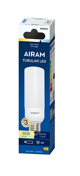 The bulb of a Tubular LED lamp has a long, slim, cylindrical shape. The light output covers the entire surface of the lamp. Tubular lamps are especially suitable for luminaires where a standard bulb does not fit and/or where an even light distribution across the whole luminaire is desired. Technical specifications are clearly presented on the packaging. Available colour temperatures are warm white and cool white (2700 K and 4000 K).
