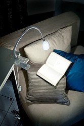Stella Clip is a spotlight that clips on to the edge of a desk or shelf. The long, flexible arm allows you to direct the light where it is needed. Metal/plastic frame in white. Non-replaceable LED 3 W 280 lm 3000 K. Europlug, white 1.5-meter cable on/off switch.