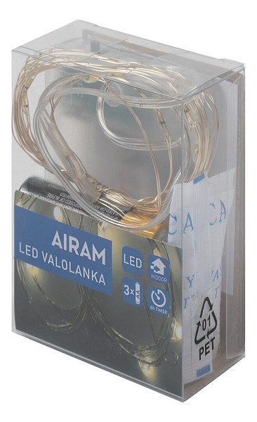 Beautiful silver-colored light string for versatile decoration. LED 20 pcs warm white, non-replaceable LED, wired in parallel, lifespan approx. 10,000 h Includes 6 h timer. Batteries 3 pcs AA, not included.