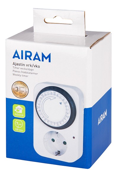 Electrical accessories Timers and time switches Weekly Timer Weekly Timer WEEKLY TIMER IP20 Mechanical timer suitable for indoor use. You can select the days you want the timer to turn on the appliance. Numerous applications. Show more Show less Code 2623312 Downloads Product card Download Installation instructions Download Technical info Codes GTIN6435200256836Code2623312Electrical number (FIN)2623312Electrical number (SWE)1330622