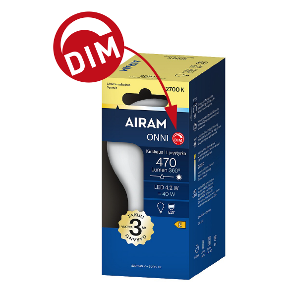 Om du söker en dimbar LED-lampa, leta efter en förpackning med den röda DIM-symbolen. Kom ihåg att du behöver en LED-dimmer för att dimra LED-lampor. Gamla dimrar för glöd- eller halogenlampor fungerar inte nödvändigtvis med LED-lampor.