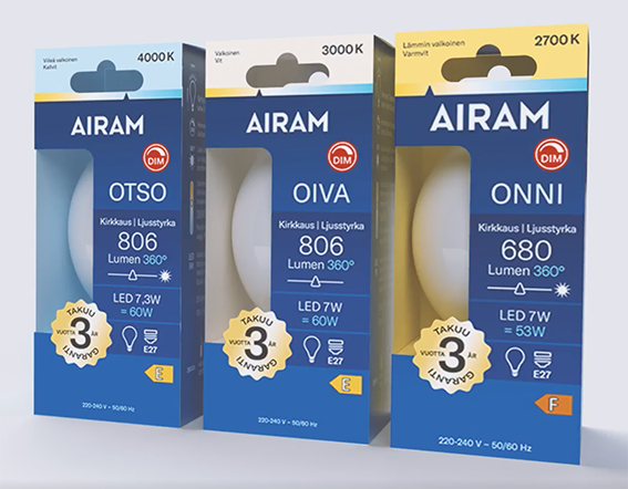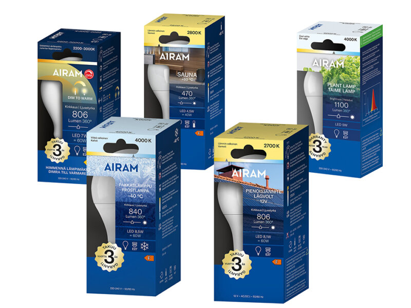 Förutom LED-lampor för allmänbelysning finns det speciallampor, såsom växtlampor, 12 V lågspänningslampor för solcellssystem, frosttåliga LED-lampor för gårdsbelysning och kalla miljöer med mera. Airams special-LED skiljer sig tydligt från lampor för allmänbelysning, eftersom användningsområdet framhävs med bilder och illustrationer på förpackningen.