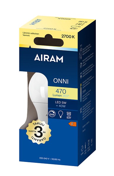 Opal standardkupa dimbar LED-lampa 5W, färgtemperatur varmvit 2700K, E27-sockel, 470 lm, livslängd ca 15 000 h, mått ø 60 x 102 mm, kartongförpackning. Frekvens ~50/60 Hz. Driftstemperaturområde -30 … +40 °C. Bra färgåtergivningsindex CRI > 80. Kontinuerligt jämnt spektrum, inga färgförvrängningar. Ingen UV- eller IR-strålning. Innehåller inte kvicksilver. Tre års garanti.