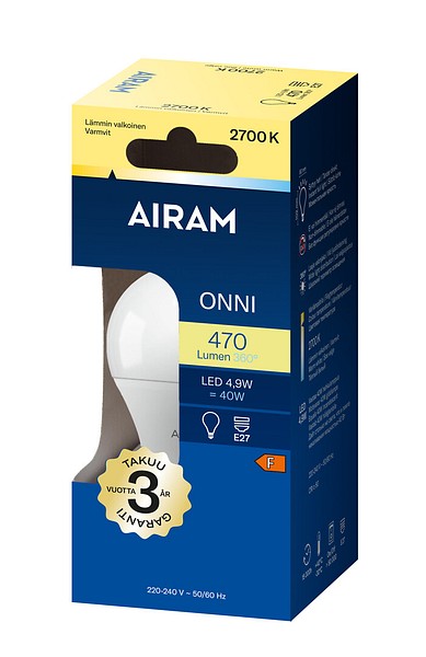 Opal standardkupa LED-lampa 4,9W, färgtemperatur varmvit 2700K, E27-sockel, 470 lm, livslängd ca. 15 000 h, storlek ø 60 x 106 mm, kartongförpackning. Frekvens ~50/60 Hz. Driftstemperaturområde -30 ... +40 °C. Hög färgåtergivningsindex CRI > 80. Kontinuerligt jämnt spektrum, inga färgförvrängningar. Ingen UV- eller IR-strålning. Innehåller inget kvicksilver. Tre års garanti.