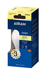 Opal, standardformad LED-lampa 8,5 W, färgtemperatur varmvit 2700 K, E27-sockel, 806 lm, livslängd ca 15 000 h, storlek ø 60 x 106 mm, kartongförpackning. Frekvens ~50/60 Hz. Driftstemperaturområde -30 ... +40 °C. Bra färgåtergivningsindex CRI > 80. Jämnt kontinuerligt spektrum, inga färgförvrängningar. Ingen UV- eller IR-strålning. Innehåller inget kvicksilver. Tre års garanti.