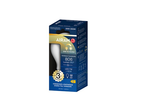 Med lamporna i serien kan du enkelt förändra belysningens stämning: ju mer du dimrar med en LED-dimmer, desto varmare blir ljusets färg. Lamporna justeras steglöst mellan vitt ljus 3000 K och varmt ljus 2200 K. De tekniska uppgifterna presenteras tydligt på förpackningen.