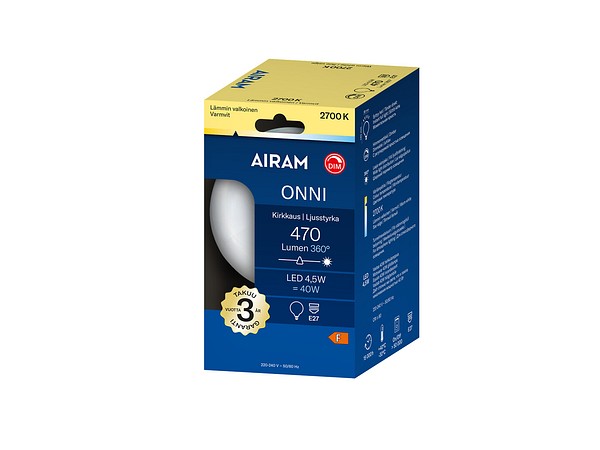 Serie med klarglas LED-filamentlampor. De dekorativa filamentlamporna passar särskilt bra i kristallkronor eller armaturer där ljuskällan är synlig. Färgtemperaturen är behagligt varmvitt ljus (2700 K). Tekniska uppgifter presenteras tydligt på förpackningen.