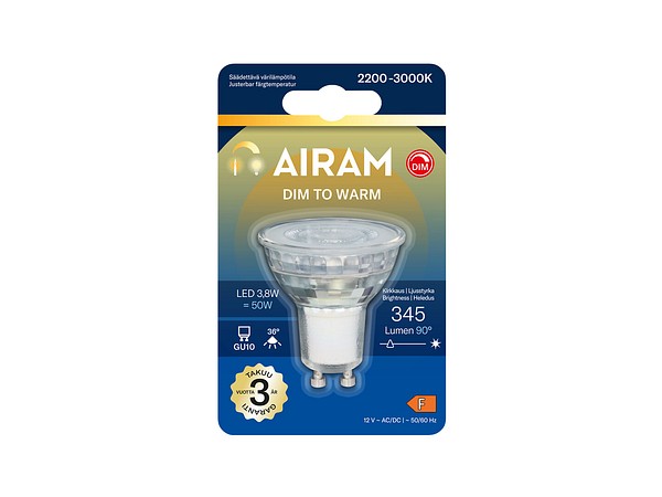 Med lamporna i serien kan du enkelt förändra belysningens stämning: ju mer du dimrar med en LED-dimmer, desto varmare blir ljusets färg. Lamporna justeras steglöst mellan vitt ljus 3000 K och varmt ljus 2200 K. De tekniska uppgifterna presenteras tydligt på förpackningen.