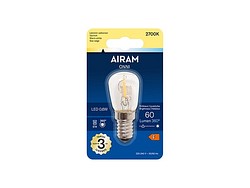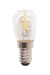 Klar liten kupa filament LED kyl- och apparatlampa 0,6W, färgtemperatur varmvit 2700K, E14-sockel, 60 lm, livslängd ca. 10 000 h, storlek ø 25 x 61 mm, blisterförpackning. Frekvens ~50/60 Hz. Lampan har helt omgivande ljusfördelning, passar bra i plafonder och bordslampor. Driftstemperaturområde -30 ... +40 °C. Hög färgåtergivningsindex CRI > 80. Kontinuerligt jämnt spektrum, inga färgförvrängningar. Ingen UV- eller IR-strålning. Innehåller inget kvicksilver. Tre års garanti.