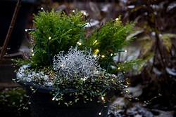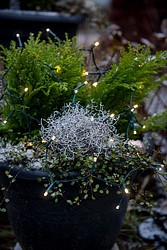 Batteridriven LED-slinga för utomhusbruk för att placera ljusdroppar till exempel i planteringarna på balkongen! 40 LED-lampor kastar ett stämningsfullt varmvitt ljus, mörk sladd.