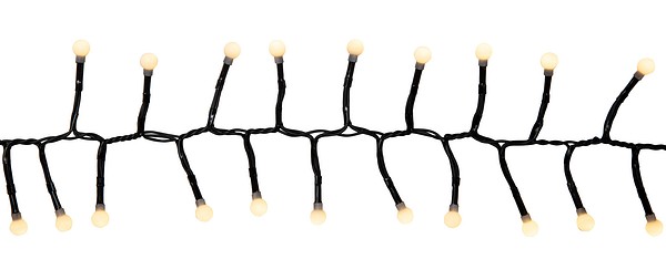 En rolig ljusserie, lämplig för utomhusbruk. Lysdioderna lyser inne i små kulor med opalkupor. Kupan gör lysdiodernas sken mjukt och trevligt. I lysdiodserien har kulorna bara 2 cm mellanrum! I serien finns 200 lysdioder, ljusandelens längd är 4 m. Två olika alternativ: antingen varmvita lysdioder eller färgmix med läckra pastelltoner (röd, gul, blå, grön). Lysdiodserien har åtta olika funktioner som kan styras med knappen på transformatorn. Mörk sladd. För inom- och utomhusbruk.