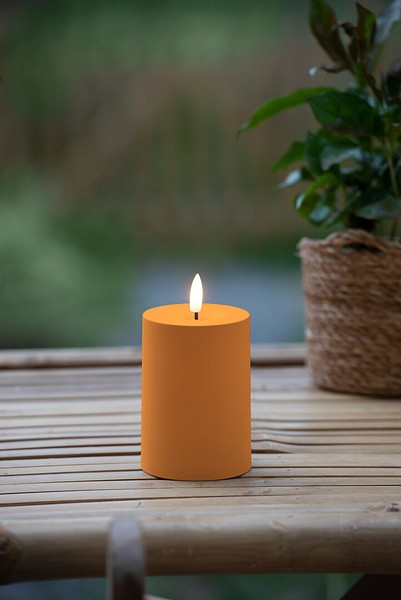 Vackert LED-bordsljus, 10 cm högt, Ø 7 cm. Ljusets orange, matta yta är tillverkad av plast. Drivs med 2 x AA-batterier, ingår ej. On/off-brytare och timerfunktion: 6 h på och 18 h av. Med LED-ljus skapar du en stämningsfull och trygg belysning i hemmet.