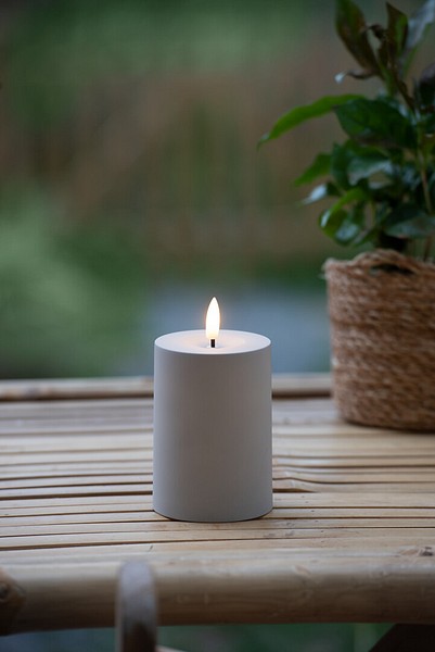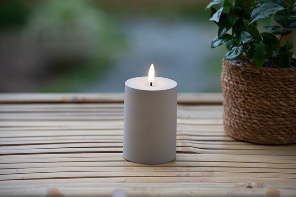 Vackert LED-bordsljus, 10 cm högt, Ø 7 cm. Ljusets sandfärgade, matta yta är tillverkad av plast. Drivs med 2 x AA-batterier, ingår ej. On/off-brytare och timerfunktion: 6 h på och 18 h av. Med LED-ljus skapar du en stämningsfull och trygg belysning i hemmet.