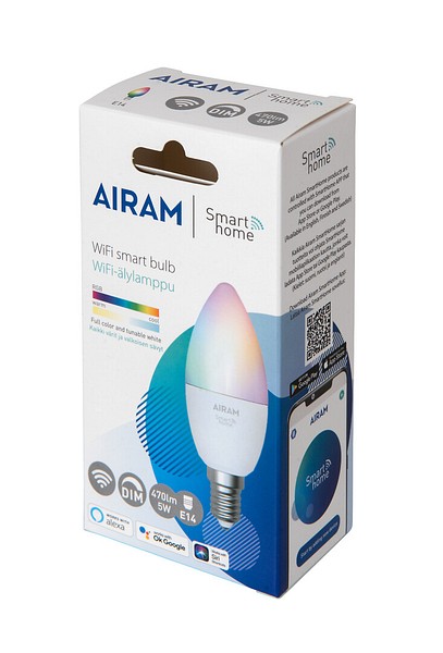 Airam SmartHome-seriens smarta produkter styrs med Airam SmartHome-appen. Ladda ner den kostnadsfria appen från App Store eller Google Play. Anslut enheterna direkt till hemmets WiFi-nätverk – ingen separat hub behövs. Produkterna kan även anslutas till röststyrning via Google Assistant, Amazon Alexa eller Siri Shortcuts.