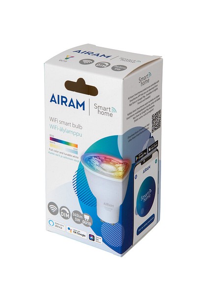 Airam SmartHome-seriens smarta produkter styrs med Airam SmartHome-appen. Ladda ner den kostnadsfria appen från App Store eller Google Play. Anslut enheterna direkt till hemmets WiFi-nätverk – ingen separat hub behövs. Produkterna kan även anslutas till röststyrning via Google Assistant, Amazon Alexa eller Siri Shortcuts.