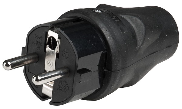 Öppningsbar gummistickpropp för utomhusbruk. Färg svart. 16 A, för 3 x 1,5 mm² sladd.