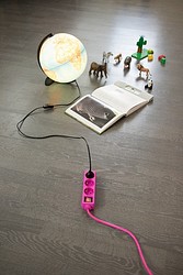 On/off-kytkimellä ja merkkivalolla varustettu maadoitettu jatkojohto sisäkäyttöön. Kotelointiluokka IP20. Pinkki johto. 3-osainen, pituus 1,5 m. H05VV-F 3 x 1,5 mm². Maksimikuorma 3680 W.