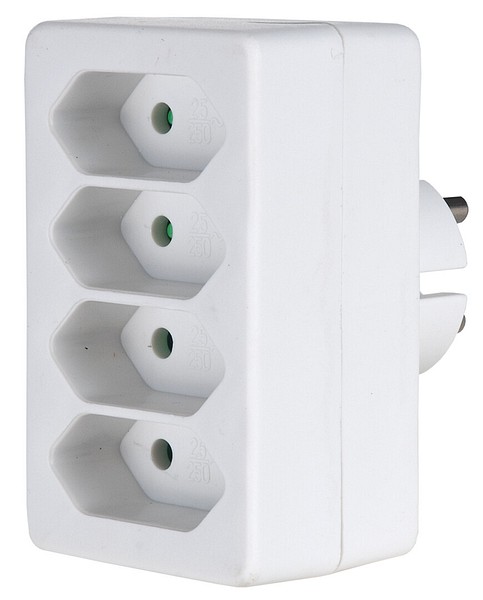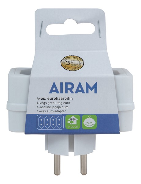 4-osainen haaroitin europistotulppajohdoille. Haaroittimilla luot helposti lisäpaikkoja sähkölaitteille. Sisäkäyttöön.