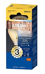 | LED DECFG P45 822 225lm E27 AM | Airam Amber kirkas pienkupu E27 2200K 225lm lasikupu |