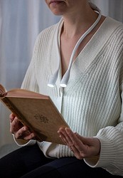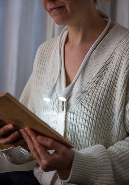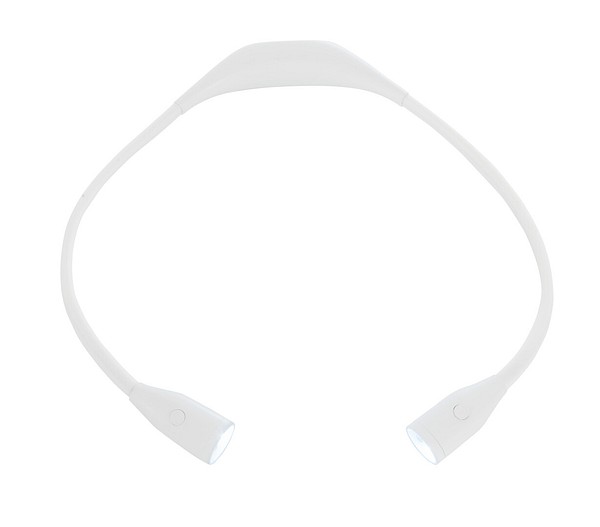 Kevytrakenteinen Luku- ja käsityövalo on lukutoukan tai käsitöiden ystävän toivetuote! Näppärä valonlähde myös kodin pieniin remonttihommiin! Kiepauta valo roikkumaan niskasi kautta ympäri ja anna valon langeta syliisi. Tuote vapauttaa kädet ja antaa sinun keskittyä tekemiseen. Vaihtoehtoina valkoinen runkoväri tai tummanharmaa, josta sormenjäljet eivät näy niin helposti. Antaa tehokasta valoa molemmista päistä. Valotehoa voi säätää kolmiportaisesti. USB-ladattava, latausjohto mukana pakkauksessa. Tuotteet toimitetaan kätevässä 5 kpl pöytätelineessä, joka on helppo asettaa esille myymälässä. Yksittäisen tuotepakkauksen voi ripustaa myös piikkiin.