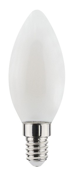 Oiva-sarjan opaali kynttiläkupuinen filamentti led-lamppu, laaja 360° valonjako, 6,5W, värilämpötila puhdas valkoinen 3000K, E14-kanta, 806lm, polttoikä n. 15000h, koko ø 35 x 97 mm, pahvipakkaus. Taajuus ~50/60Hz. Lampulla on täysin ympärisäteilevä valonjako, se sopii hyvin plafondeihin ja pöytävalaisimiin. Toimintalämpötila-alue -30 … +40 °C. Hyvä värintoistoindeksi CRI > 80. Jatkuva tasainen spektri, ei värivääristymiä. Ei UV- tai IR-säteilyä. Ei sisällä elohopeaa. Kolmen vuoden takuu.