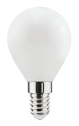 Oiva-sarjan opaali pienkupuinen himmennettävä filamentti led-lamppu, laaja 360° valonjako, 4,2W, värilämpötila puhdas valkoinen 3000K, E14-kanta, 470lm, polttoikä n. 15000h, koko ø 45 x 80 mm, pahvipakkaus. Taajuus ~50/60Hz. Himmennettävissä led-himmentimellä. Lampulla on täysin ympärisäteilevä valonjako, se sopii hyvin plafondeihin ja pöytävalaisimiin. Toimintalämpötila-alue -20 … +40 °C. Hyvä värintoistoindeksi CRI > 80. Jatkuva tasainen spektri, ei värivääristymiä. Ei UV- tai IR-säteilyä. Ei sisällä elohopeaa. Kolmen vuoden takuu.