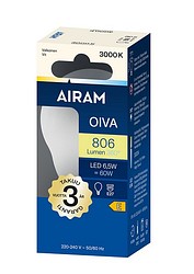 | LED A60 830 470lm E27 DIM OIVA OP | Airam Oiva opaali 360° vakiokupu E27 3000K 470lm himmennettävä |