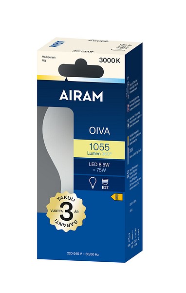 | LED A60 830 470lm E27 360 OIVA OP | Airam Oiva opaali 360° vakiokupu E27 3000K 470lm |