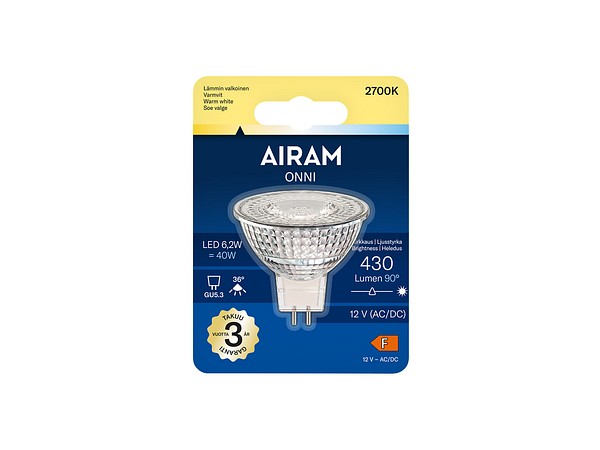 | LED FG MR16 827 230lm GU5.3 12V 36D | Airam Onni kohdekupu MR16 GU5.3 12V 2700K 230lm/580cd |