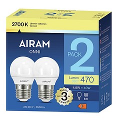| LED P45 827 470lm E27 OP 2BX | Airam Onni opaali pienkupu E27 2700K 470lm 2kpl |
