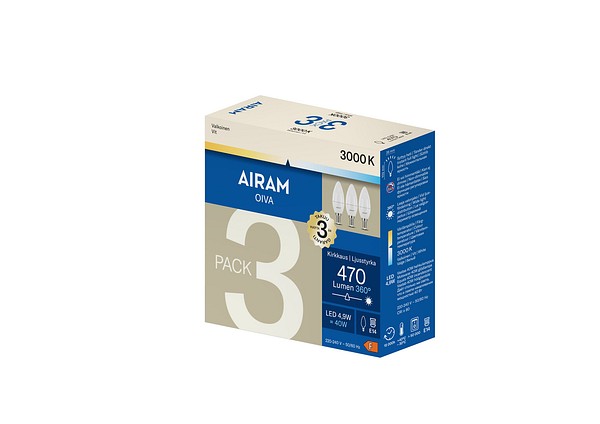 | LED C35 830 470lm E14 OP 3BX | Airam opaali kynttiläkupu E14 3000K 470lm 3kpl |