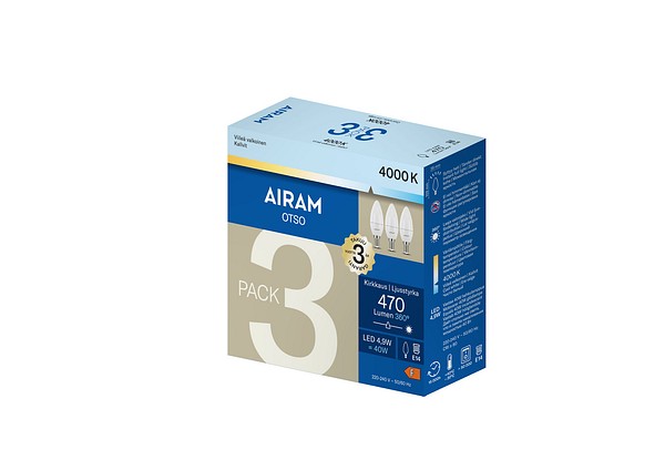 | LED C35 827 470lm E14 OP 3BX | Airam opaali kynttiläkupu E14 2700K 470lm 3kpl |